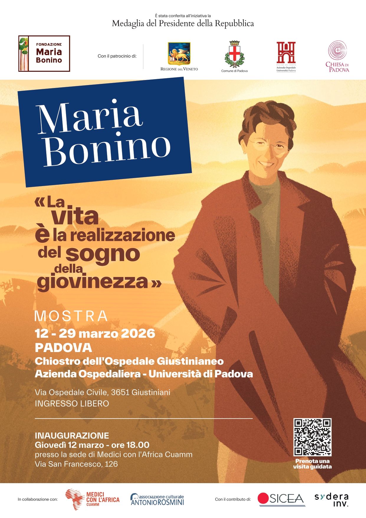 Ospitata in uno spazio simbolo del patrimonio storico-sanitario della Città di Padova, la tappa padovana rappresenta un’occasione di incontro e riflessione sui temi della cura, della solidarietà e della responsabilità verso gli altri — valori che hanno animato l’intera vita di Maria Bonino e che continuano a parlare anche alle nuove generazioni.